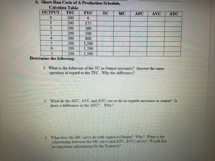 Solved: A. Short-Run Costs Of A Production Schedule. Calcu ... from d2vlcm61l7u1fs.cloudfront.net What is meant by utility? Tp has the height of tvc and tc and the height of tfc. What ways can production be related to cost?
